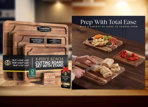 Yes, many acacia cutting boards come with thoughtful features designed to make food prep easier and more hygienic. Deep juice grooves are common—they catch liquids from meat, fruit, or vegetables, keeping your countertops clean. Built-in handles allow for easy lifting, carrying, and serving, while reversible surfaces provide double the workspace. Some premium sets also include storage stands, compartments for organized prep, or even built-in serving trays. These features make acacia cutting boards versatile tools suitable for chopping, slicing, serving, and entertaining, all in one elegant package.