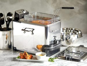 Frying has never become this easy using mini deep fryers and those too electric ones! It is made out of stainless steel with 5 inches depth and you can cook a good batch of fried products for your family. It is very safe in terms of the hot oil getting splashed all over and prevents the odor from spreading as well. You just need a damp cloth to clean the outer body and the fryer also comes with adjustable temperatures to cook different products like donuts, mushrooms, and much more. It is one of the finest modern kitchen equipment and is backed with a year’s warranty.