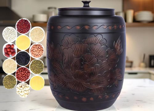 This Ceramic Rice Container delivers a premium storage experience with its purple clay construction, giving it a durable, elegant feel unlike typical plastic dispensers. The black glazed finish adds a decorative touch, making it both functional and visually striking. With a 33 lbs capacity, it’s ideal for large households or serious home cooks. The wide opening offers easy scooping, while the airtight lid helps preserve freshness. Compared with standard rice containers, this model excels in aesthetics and longevity, though it’s heavier and less portable. Its price reflects its craftsmanship, making it a luxury option for style-focused kitchens.