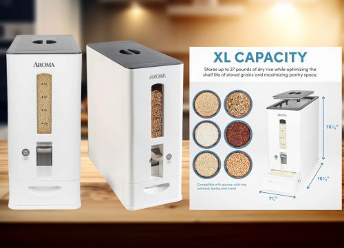 8. Aroma Housewares 27 lbs Rice Dispenser: High-Capacity, Auto-Measuring & Effortlessly Stylish