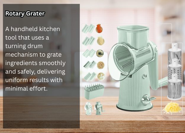 👉 In professional kitchens, rotary graters are often used to improve workflow and efficiency during prep.