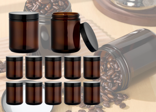2. Hoa Kinh 8oz Amber Glass Jars with Lids – Best Airtight Containers for Candles, Cosmetics, Spices, and Crafts (12-Pack)
