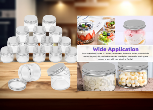 The Swpeet 15 Pack 2oz Transparent Glass Jars with Silver Lids deliver a sleek, reliable solution for storing creams, balms, and travel essentials. Crafted from thick, high-quality glass with rust-resistant plastic lids, these jars offer both durability and elegance. Their airtight seal prevents leaks, making them ideal for trips or daily cosmetic use.