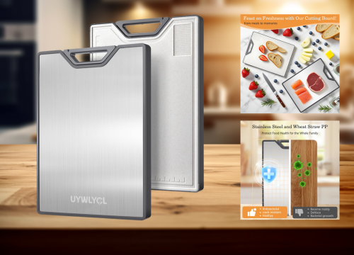 The UYWLYCL cutting board is built for cooks who want everything in one tool. Its dual-surface design pairs a food-grade stainless steel side for meat with a wheat straw PP side for produce, reducing cross-contamination. What sets it apart is the integrated knife sharpener, measuring guide, grinding area, and deep juice groove—features rarely found on metal boards. Compared with basic stainless boards, it’s thicker, heavier, and more stable during chopping. Cleaning is simple, though hand wash is required. At $29.99, it offers strong value for feature-focused kitchens and multitaskers.