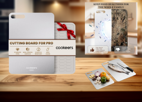 The COOKEERS stainless steel cutting board is designed for users who prioritize hygiene and minimalism. Crafted from food-grade 304 stainless steel, its ultra-thin, non-porous surface resists stains, odors, and rust. The double-sided layout allows easy separation of meat and produce, while the included silicone mat improves grip during slicing. Compared with thicker steel boards, this one is lighter and easier to store, though it feels less heavy-duty. Cleaning is effortless thanks to full dishwasher compatibility. With premium packaging and a clean design, it’s a solid choice for modern kitchens, especially when purchased at the discounted price.