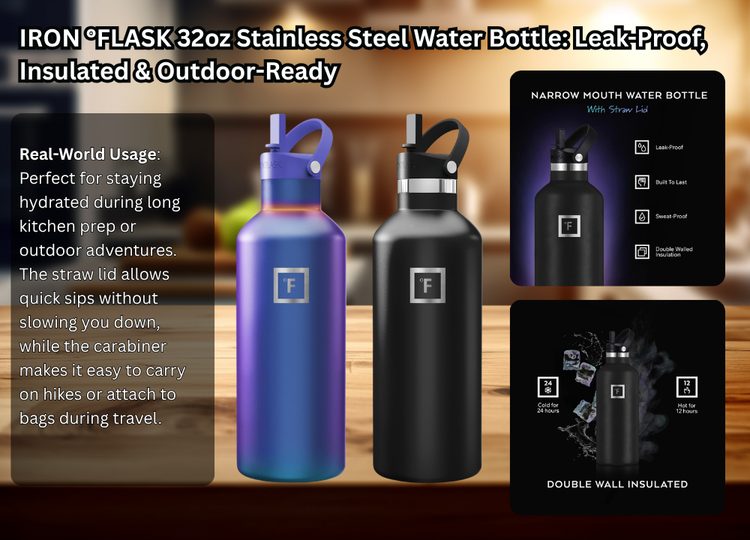 3. IRON °FLASK 32oz Stainless Steel Water Bottle: Leak-Proof, Insulated & Outdoor-Ready