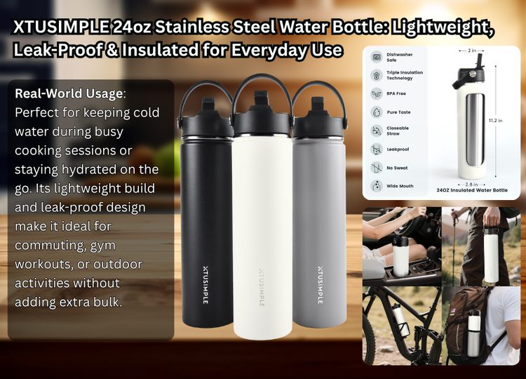 2. XTUSIMPLE 24oz Stainless Steel Water Bottle: Lightweight, Leak-Proof & Insulated for Everyday Use