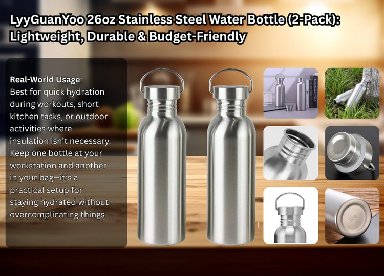 11. LyyGuanYoo 26oz Stainless Steel Water Bottle (2-Pack): Lightweight, Durable & Budget-Friendly